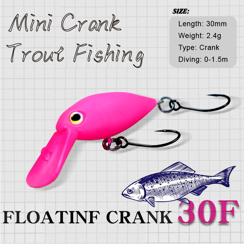 Petit leurre de pêche à manivelle stocké 30mm 2.4g plongée profonde 1.5m plongeur profond manivelle blanc crochet unique pour la pêche à la truite bar