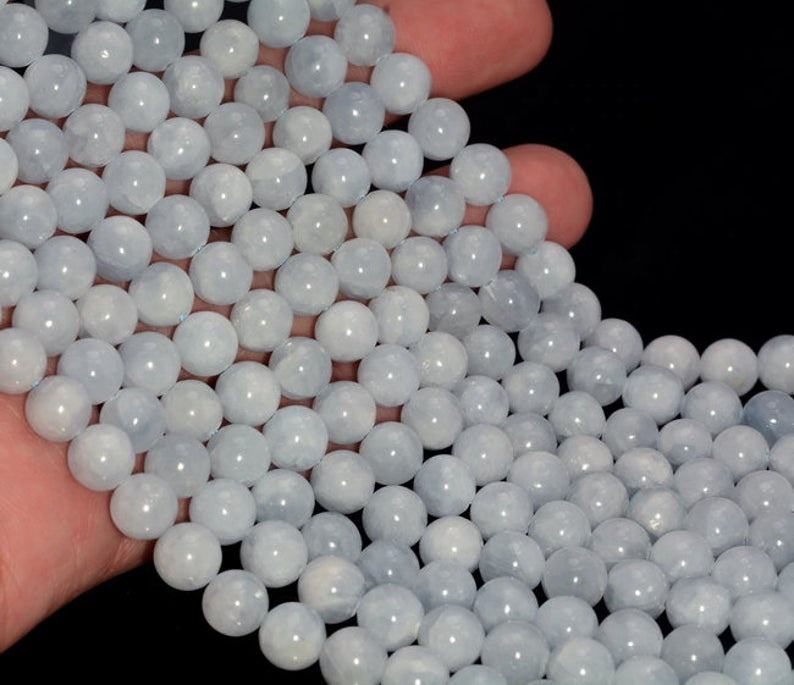 Perles de pierre perles de calcite bleues bijoux en pierre lâche pierres précieuses lisses collier de cristal de guérison perles cristal naturel grossiste