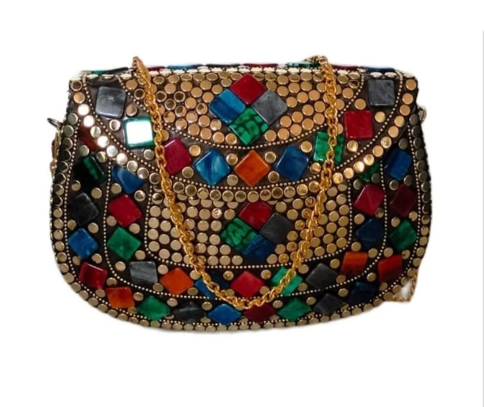 Pochette en pierre conception de luxe sacs faits à la main concepteur de soirée en argent prêt à expédier Sa résine laiton mosaïque avec métal
