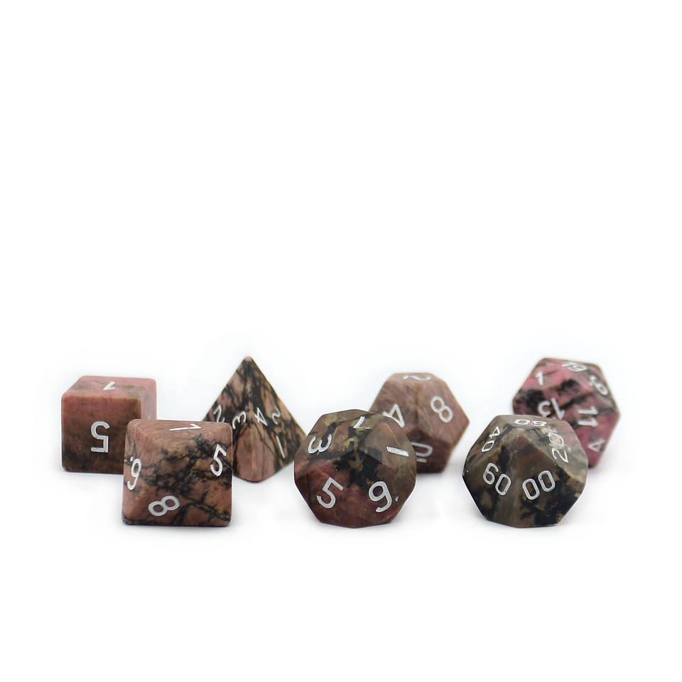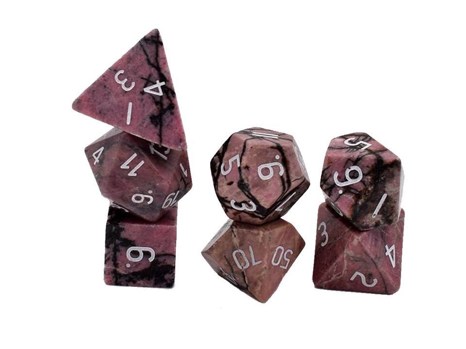 Dés en pierre rhodonite naturelle pierre précieuse pierre gravée ensembles de dés personnalisés Vikings grossiste de dés en pierre de cristal naturel