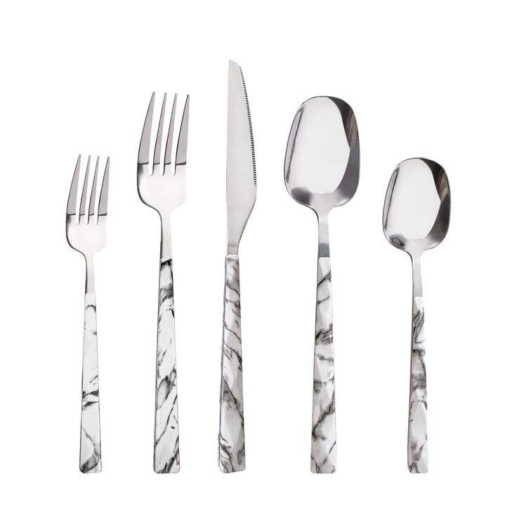 Ensemble de couverts en acier inoxydable de conception moderne avec poignée en pierre Vaisselle en vrac durable pour les cuisines prêtes pour le mariage