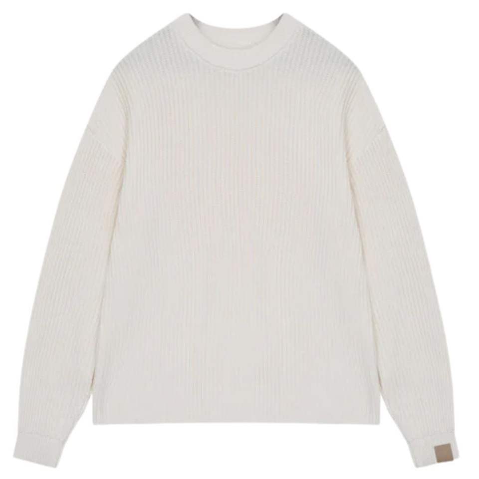Pull ras du cou côtelé en maille de coton doux, délavé effet vieilli, à manches longues, style minimaliste décontracté pour homme, coupe confortable, qualité supérieure