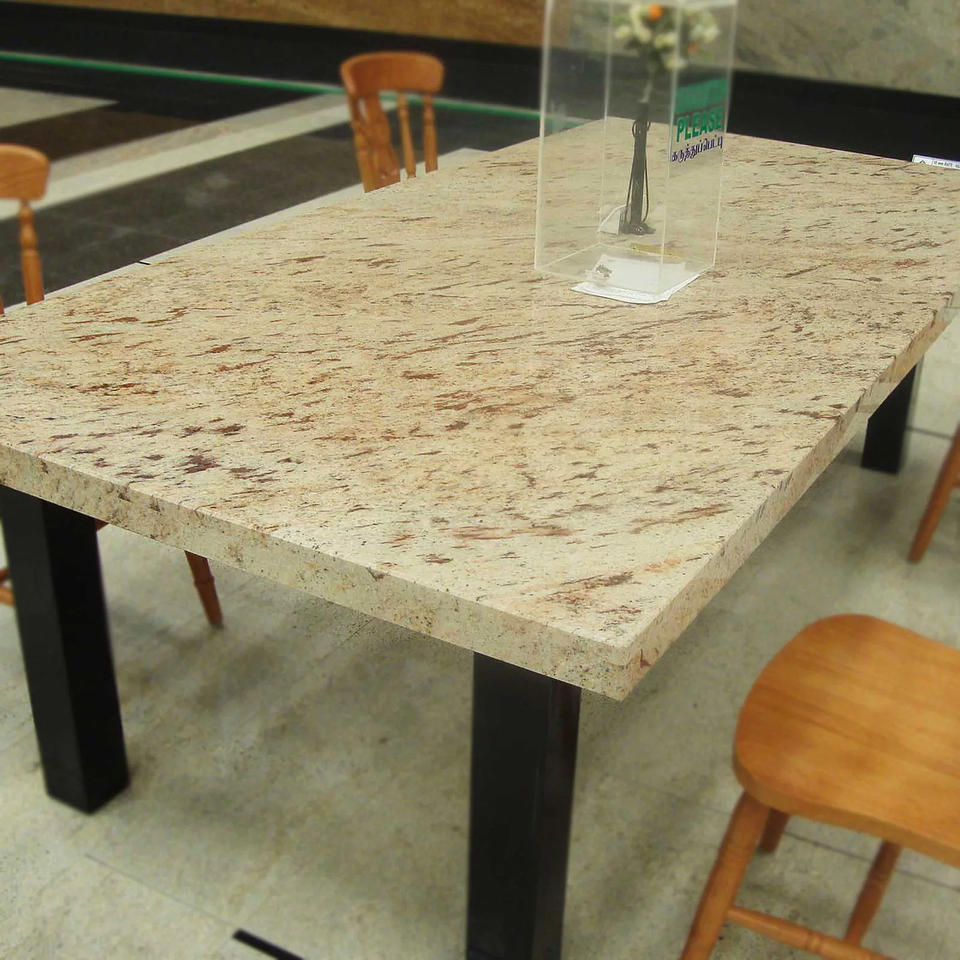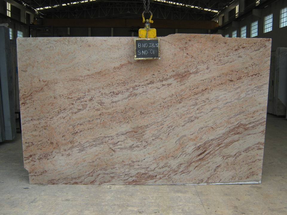 Dalles et carreaux en granit brun tropical ivoire de qualité supérieure Stone International, polis, pour utilisation hôtelière, design traditionnel, grande dalle de pierre