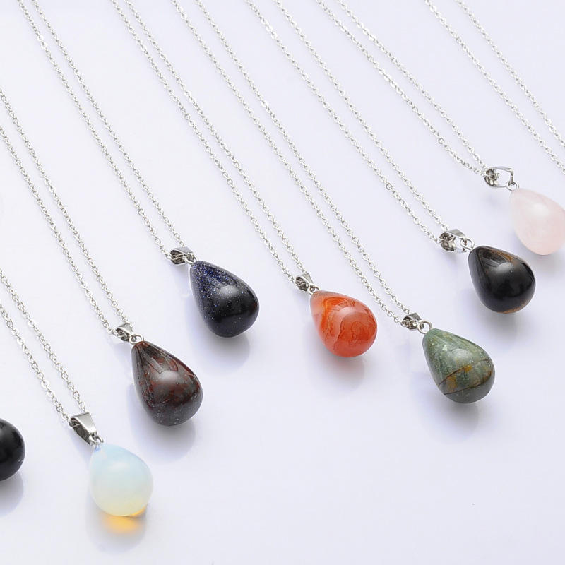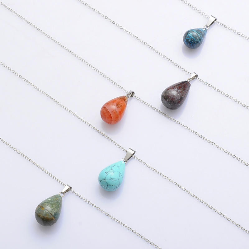 Pierre Pendentifs Goutte D'eau Forme Perles Cristal Quartz Pierre Charme Avec 18 Pouces Imitation Cordon En Cuir Chaîne Pour Collier Bijoux