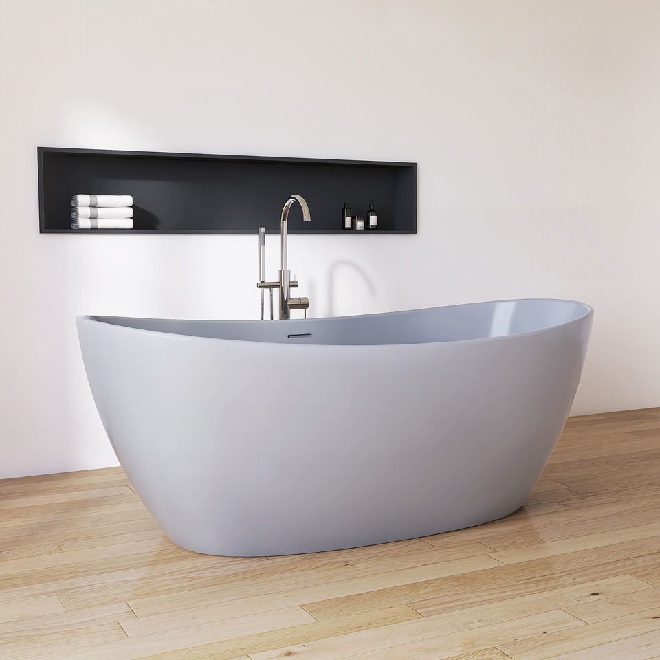 Baignoire ovale autoportante à surface solide en résine de pierre Baignoires en pierre artificielle à remous de luxe de style villa