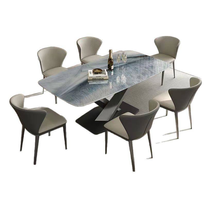 Ensemble table et chaises en dalles de pierre, 6 pièces, structure robuste pour salle à manger
