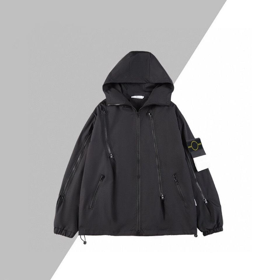 Veste Softshell Homme Style Pierre en Nylon et Métal, Coupe-Vent Décontracté à Capuche Zippé Printemps-Automne Island