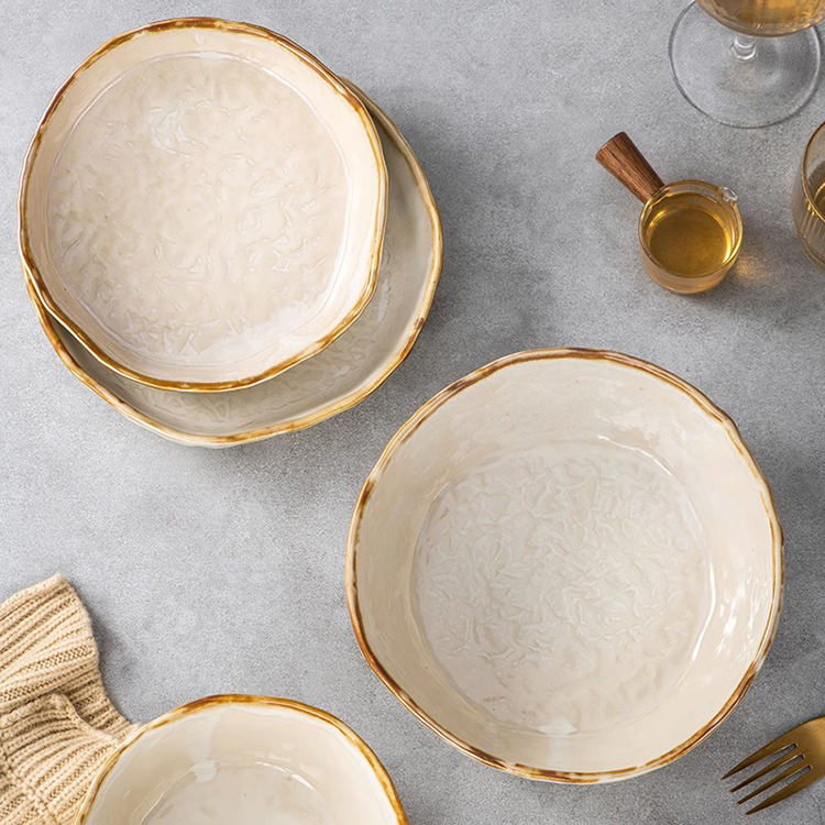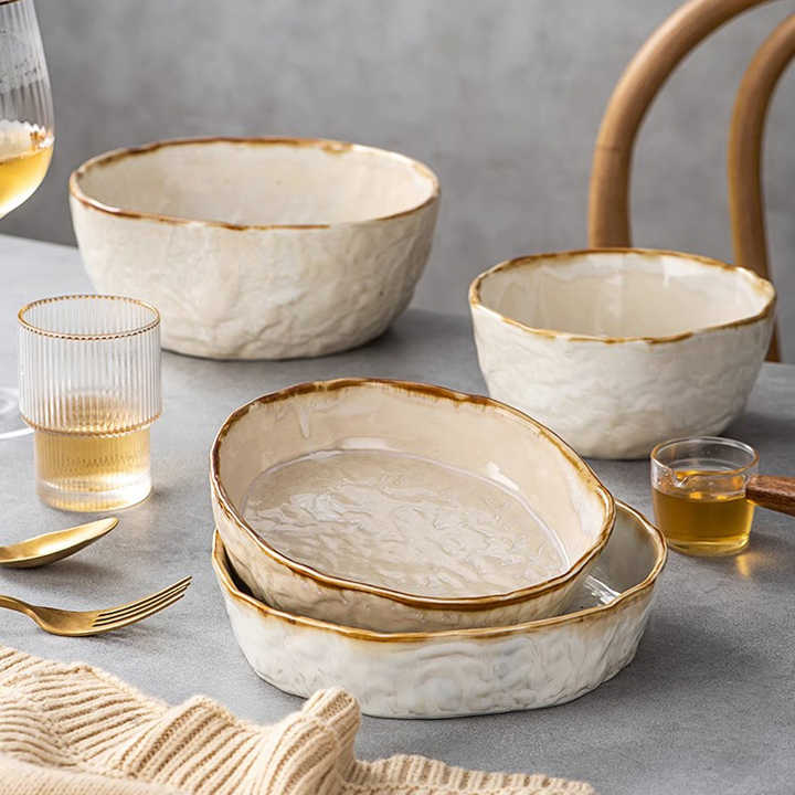 Ensemble de saladiers style pierre ensemble de vaisselle en céramique ensemble d'assiettes et de bols ronds en porcelaine pour la maison