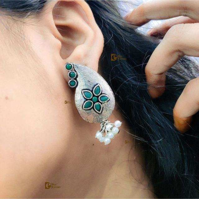 Travail de pierre oxydé conception de paon boucles d'oreilles avec perles perle tenue de fête pour les femmes produit en vrac fait à la main