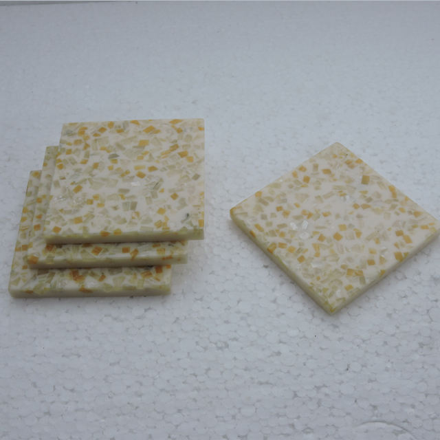 Vente en gros de sous-verres de service de thé en pierre et résine avec sol en mosaïque Tasse à thé de luxe Dessous de verre en pierre en marbre et incrustation de métal