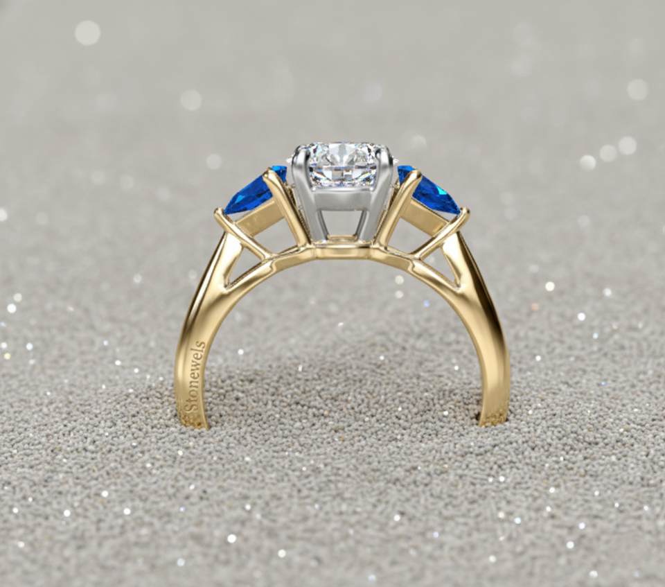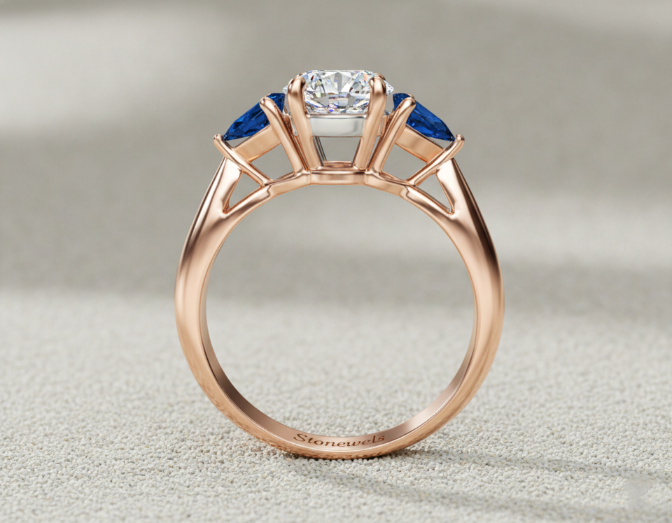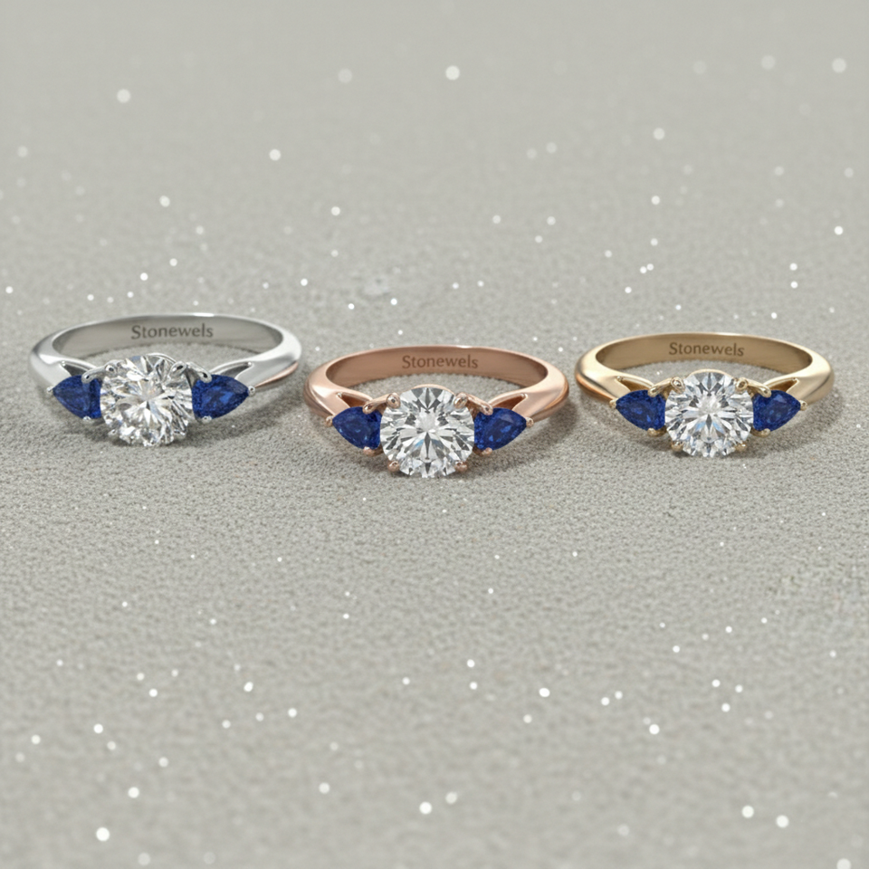 Numéro de Type:Pear Shaped Blue Sapphire Three Stone Ring