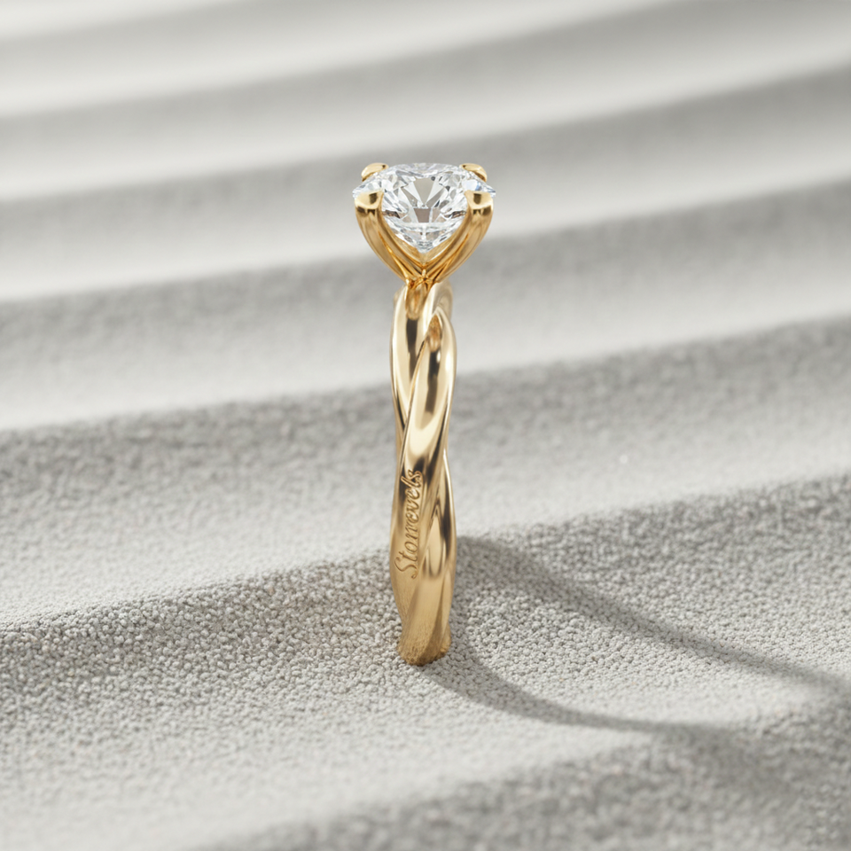 Bague de fiançailles solitaire Stonewels en or massif avec anneau rond en corde | Diamant de laboratoire serti à griffes pour un luxe certifié
