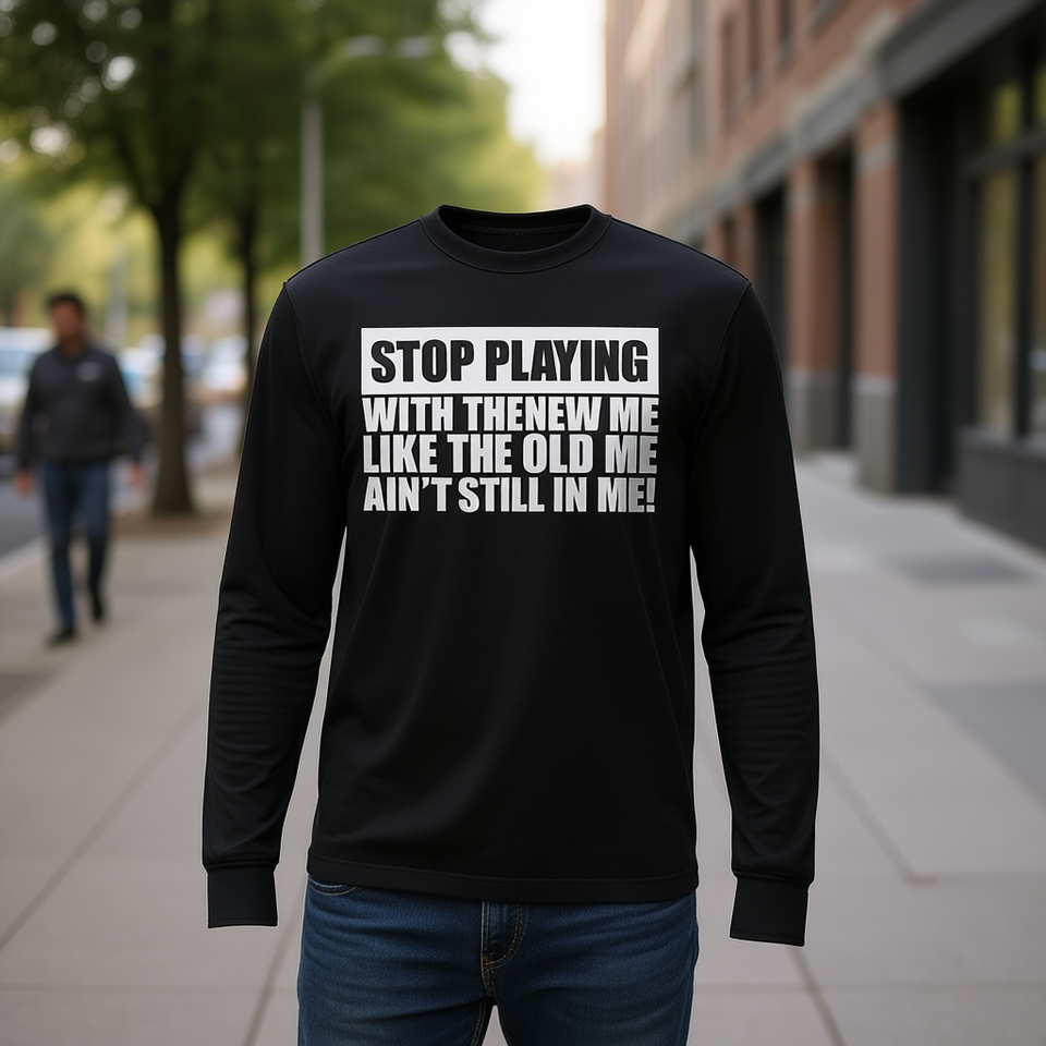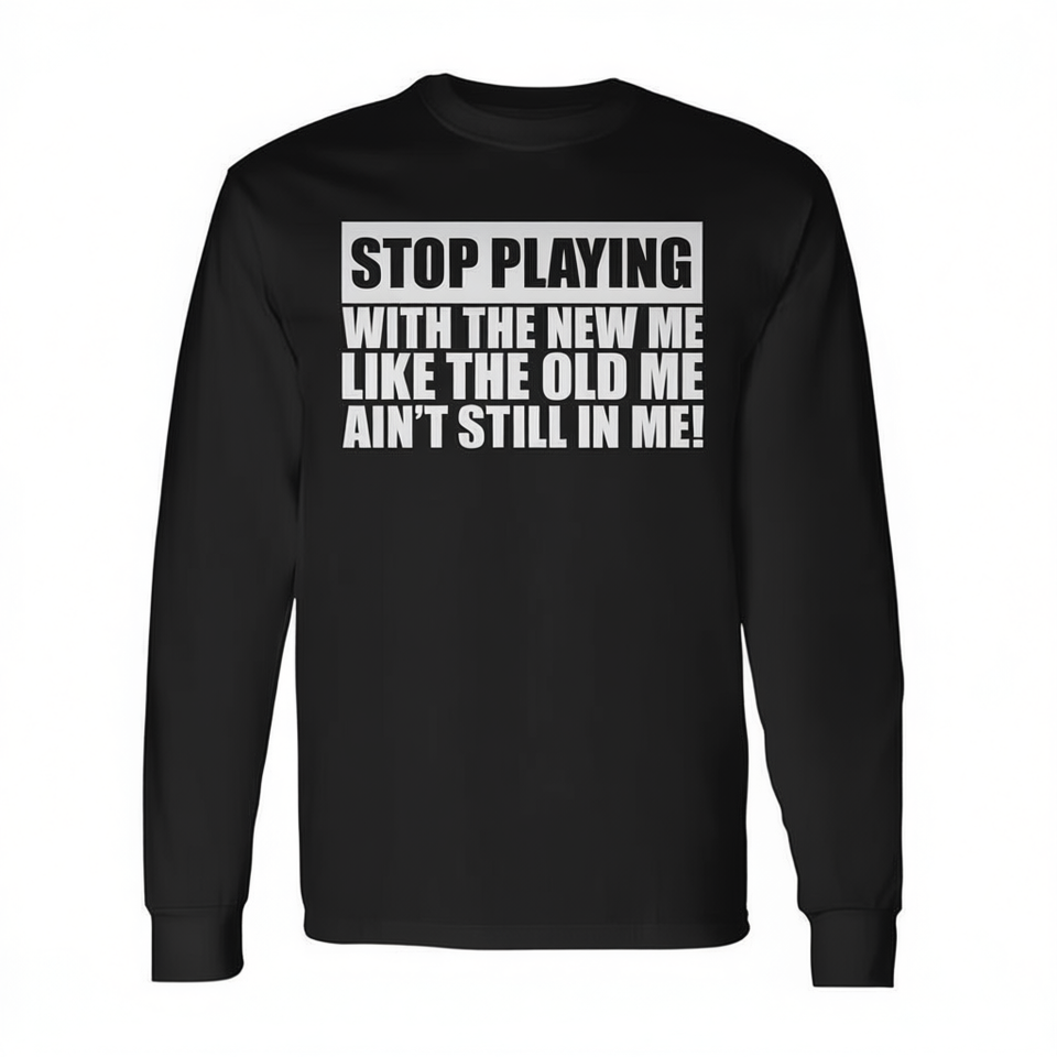 Arrêtez de plaisanter avec le nouveau moi, comme si le vieux moi n'était pas encore là, dans un t-shirt à manches longues