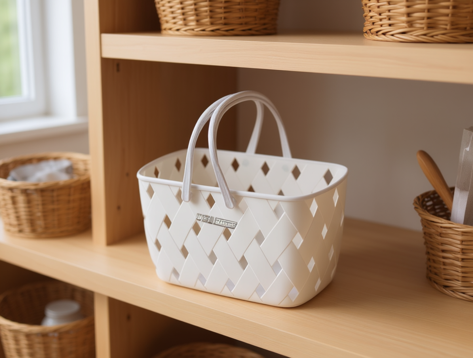 Panier de rangement rectangulaire en plastique avec poignée en corde, conteneur de rangement simple