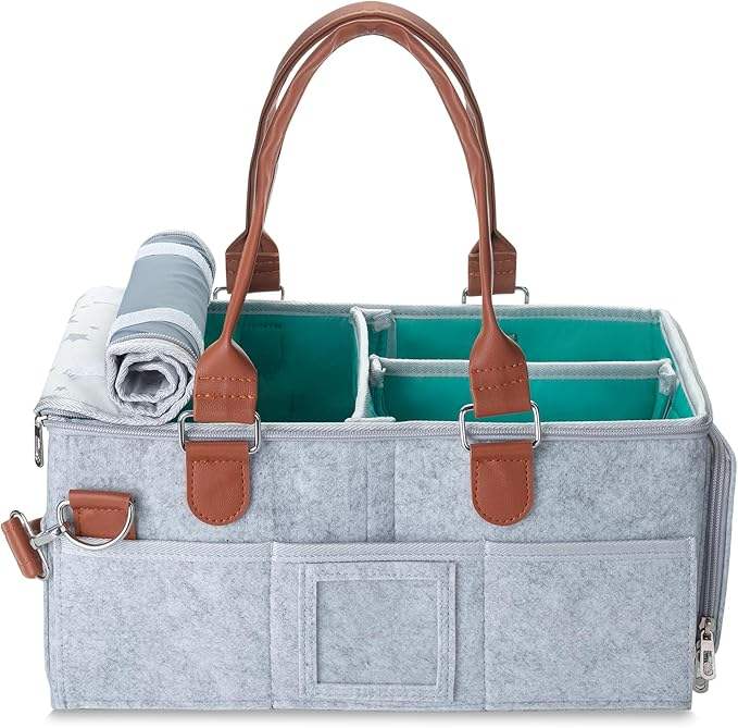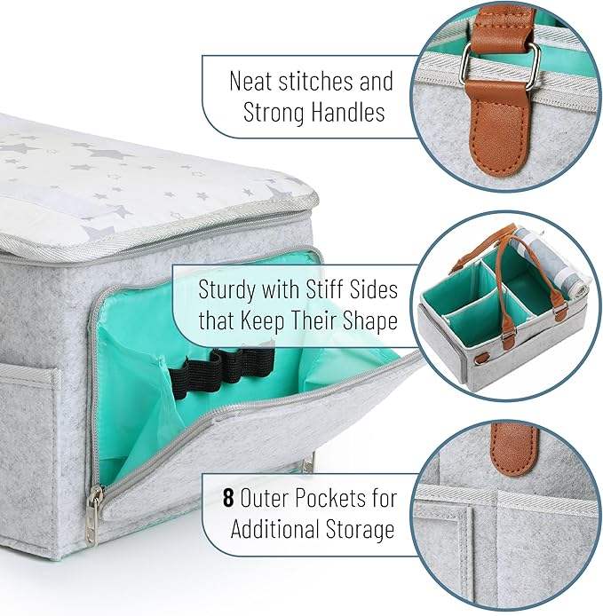 Boîte de rangement Organisateur de couches pour bébé Organisateur de couches portable pour table à langer-Gris avec couvercle Rangement des couches