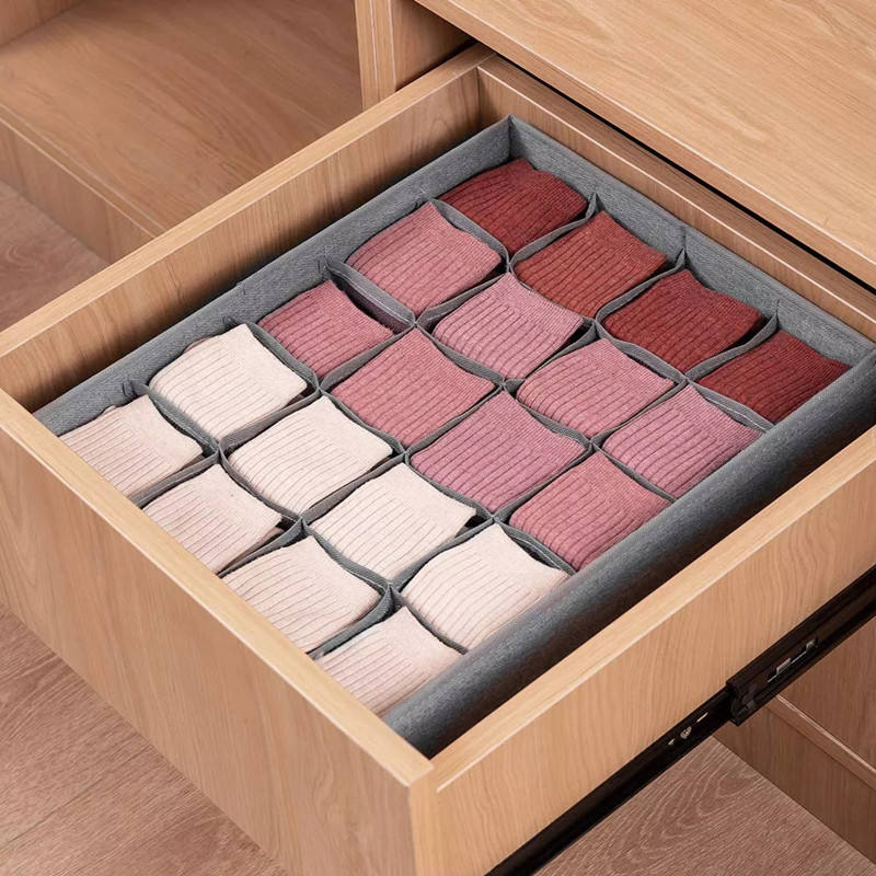 Boîte de rangement Chaussettes Soutien-gorge Sous-Vêtements Organisateur Ménage Pliable Non-tissé Tissu 24 Cellules Vêtements Armoire Simple Carré Couture NFS