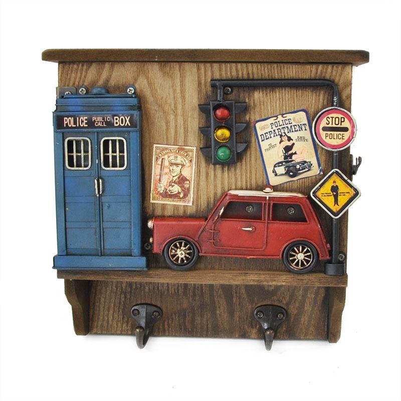 Boîte de rangement Avec 2 Crochets Police Boite Auto Plaque Métal Artisanat Ornements De Bureau Bar Café Boutique Décoration Murale Vintage Industriel