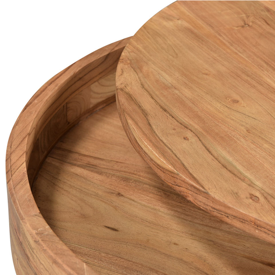 Table basse de rangement au design moderne, essentielle pour le salon, en bois d'acacia massif, plateau rond, pieds coniques en forme d'épingles à cheveux
