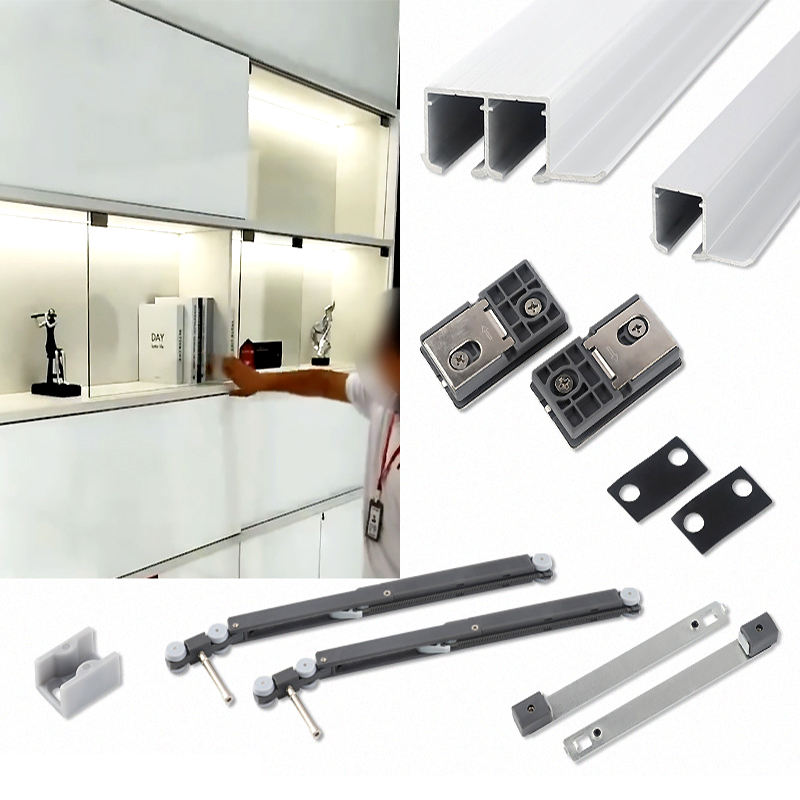 Rail de rangement Raccords intérieurs Accessoires Rouleaux de cuisine Montage suspendu Quincaillerie coulissante murale Portes en verre pour armoire