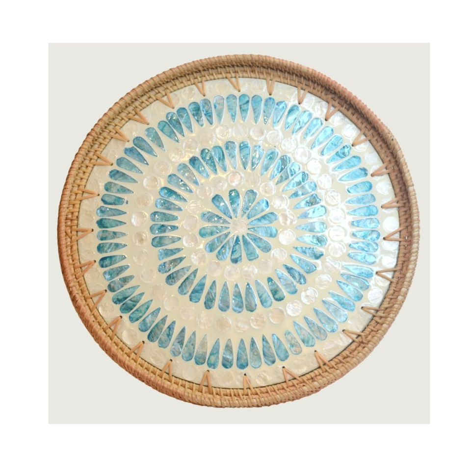 Plateau de rangement rond en rotin et nacre, 16 pouces, pour artisanat, panier de rangement, vente en gros