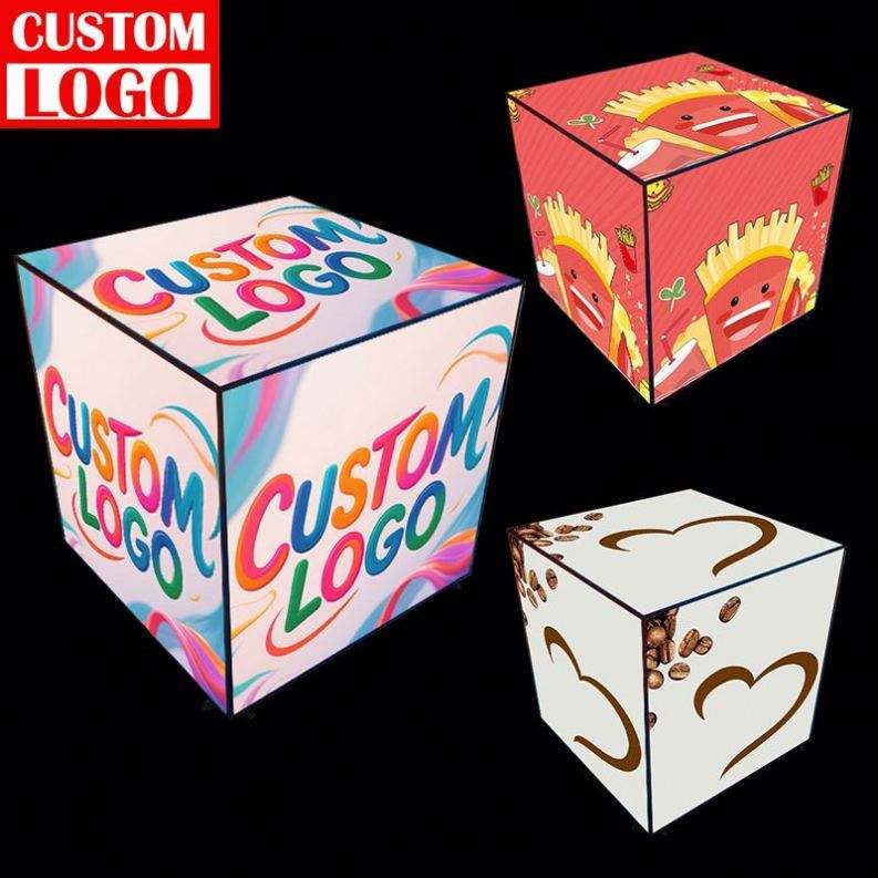 Boîte à lumière LED en forme de cube pour bar à café, boîte à lumière décorative créative en forme de cube, boîte à lumière en forme de cube avec motif personnalisé