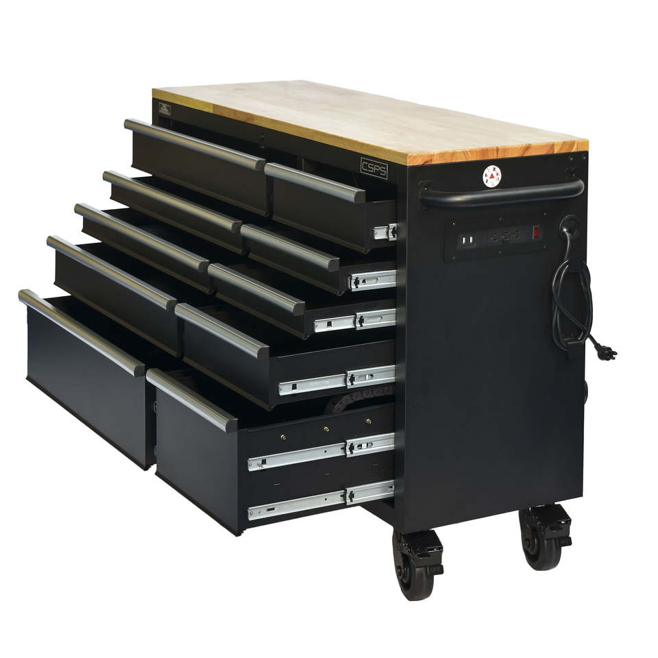 Armoire à outils robuste noire de 132 cm pour atelier et garage, avec 10 tiroirs en acier inoxydable et serrure à clé, idéale pour l'industrie et les garages (OEM)