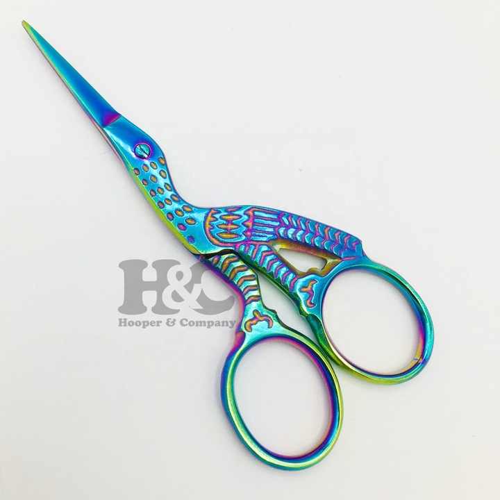 Ciseaux de cigogne utilisant pour la broderie durable de sourcils de cils et l'utilisation de ciseaux de salon à la maison revêtement de Plasma arc-en-ciel