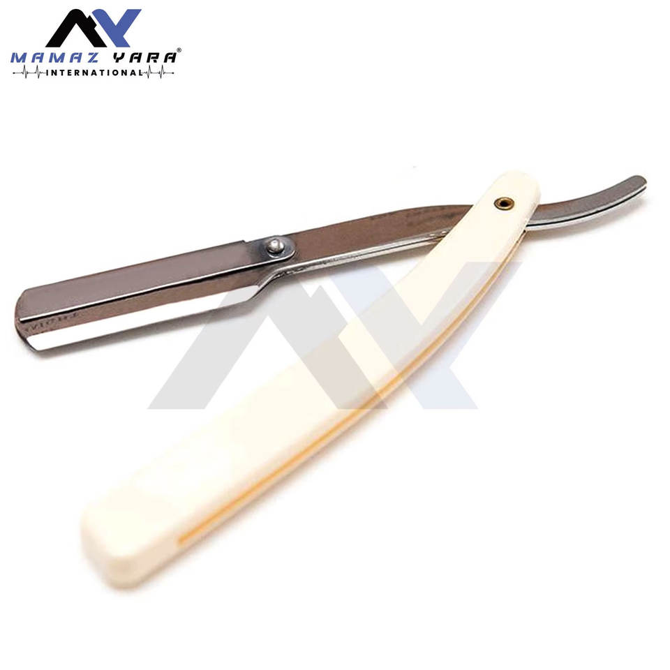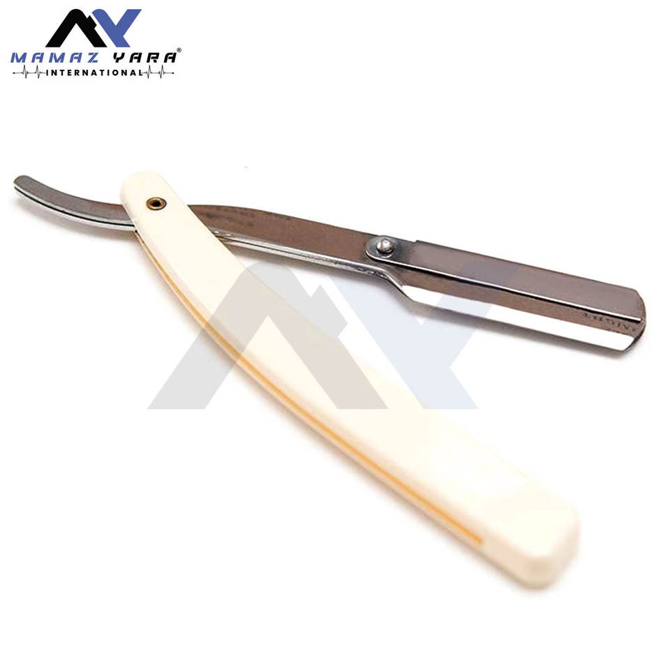Rasoirs de barbier droits avec emballage en papier, manche en plastique à verrouillage pivotant, logo personnalisé, rasoirs de barbier pour salon