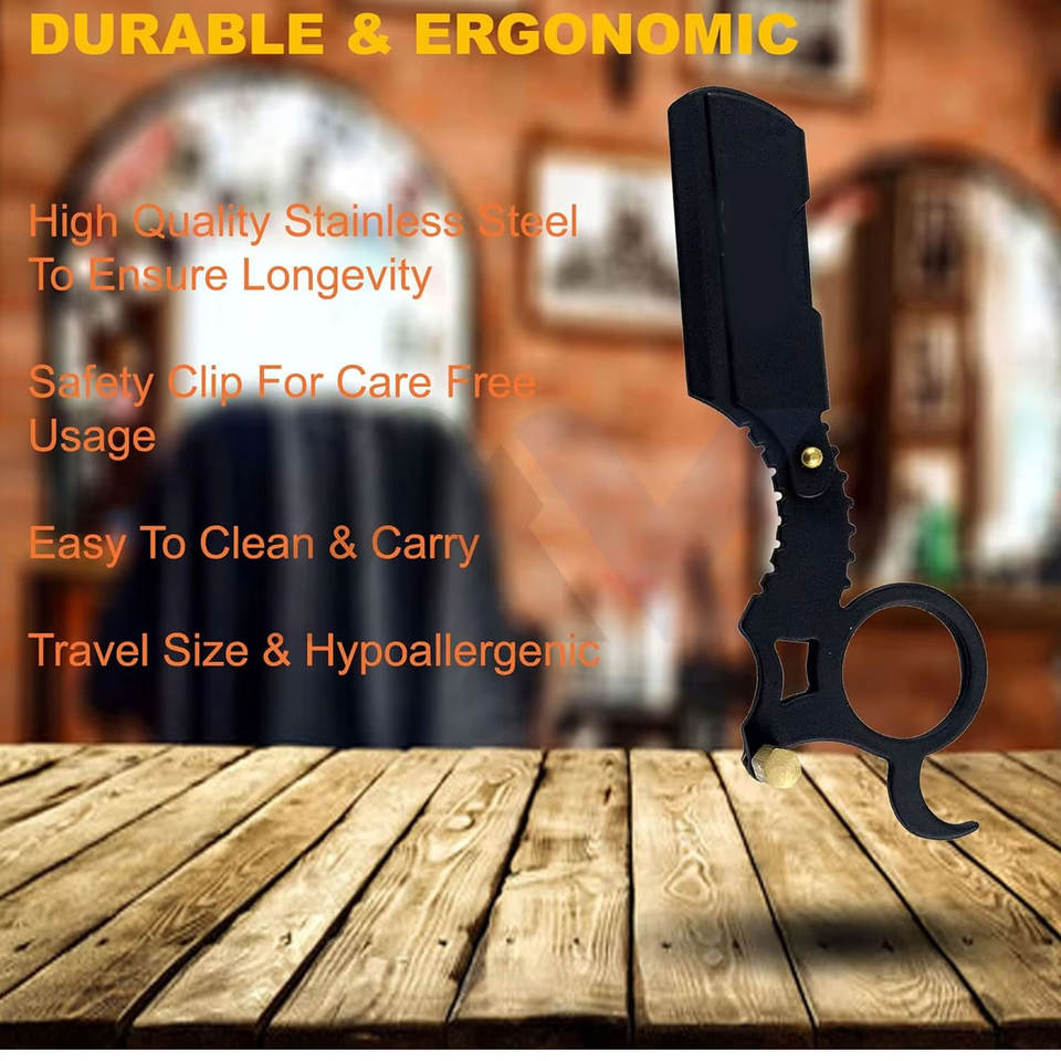 Rasoir de Barbier à Lame Droite pour un Rasage Précis, Qualité Salon, Rasoir Manuel pour Hommes, Rasoir à Main pour la Barbe, Shavette de Haute Qualité