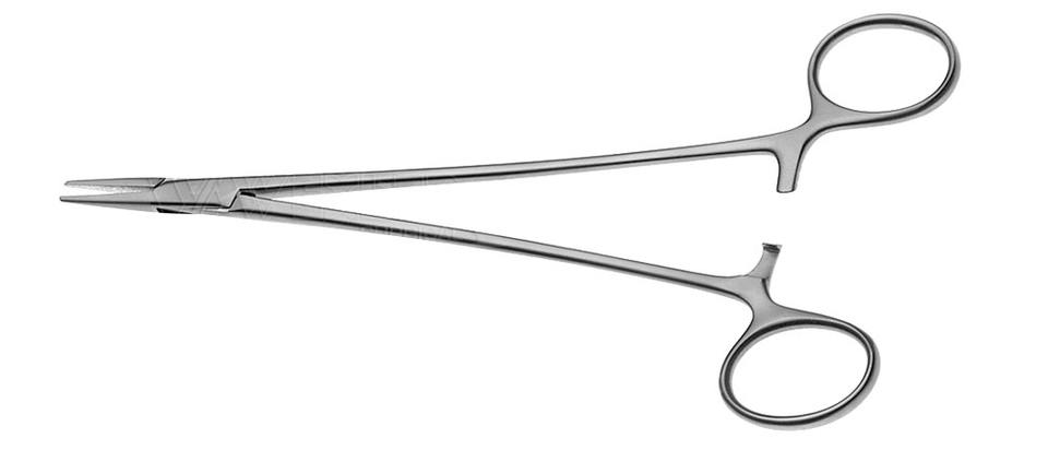 Porte-aiguille droit à anneau MIS, mâchoires revêtues de carbure de tungstène, tige de 5 mm, à cliquet, longueur totale 16,5 cm, longueur de travail 26,5 cm, ZETOMEDPRO