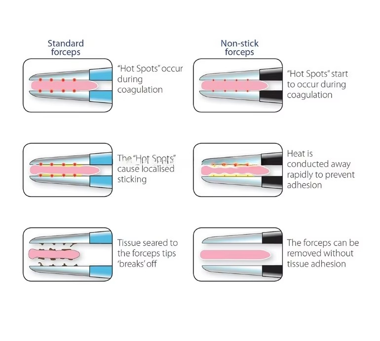 Pinces chirurgicales monopôlaire Potts Smith droites, interrupteur manuel, noires, antiadhésives, avec câble pour chirurgie et hémostase