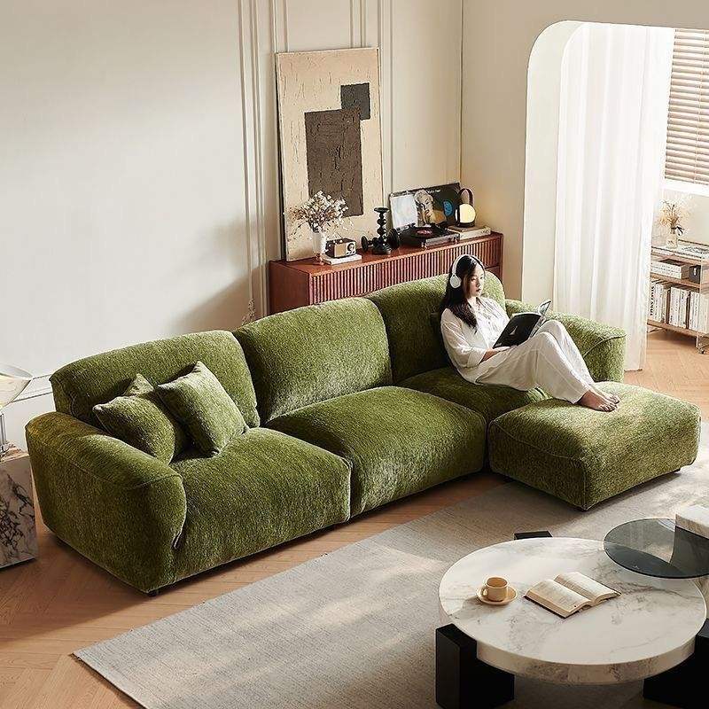 Canapé en tissu à rangées droites, garnissage en duvet, revêtement en chenille, canapé de salon, style moderne et simple