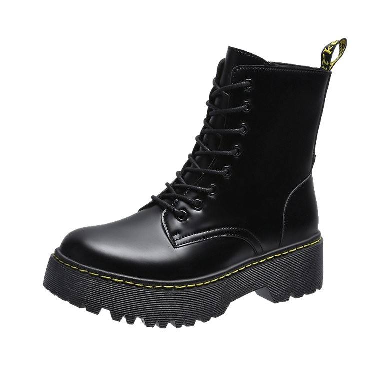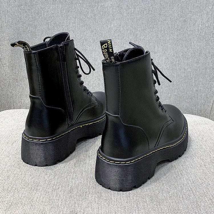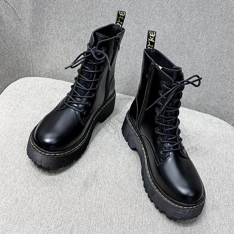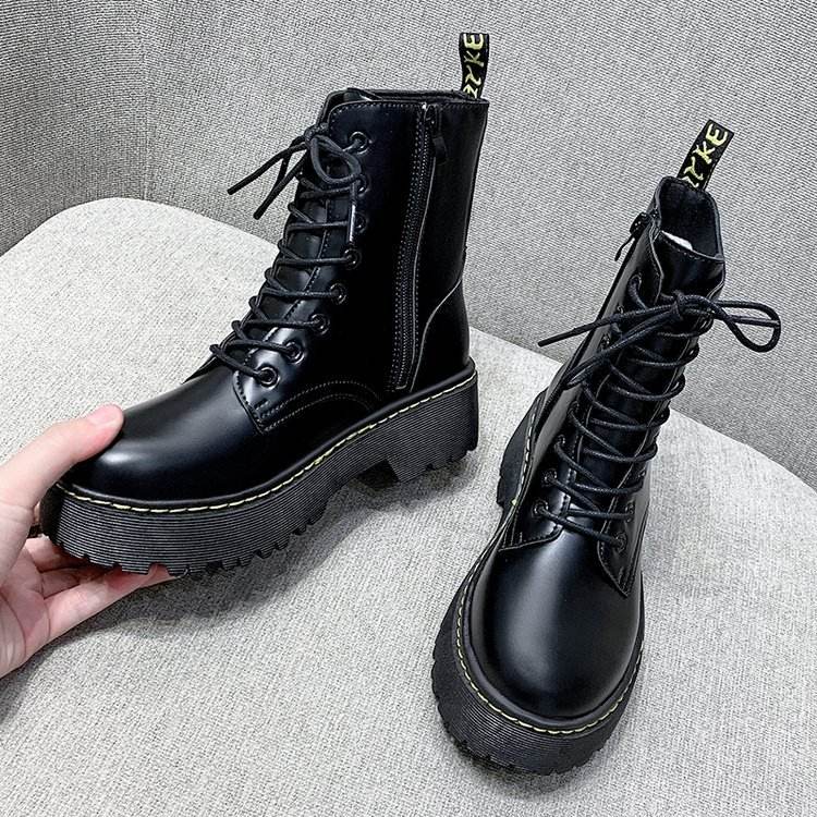 Bottes Martin à semelle épaisse noires style britannique avec lanières, modèle fin, nouvelle collection été 2026 pour femme, bottines rehaussantes