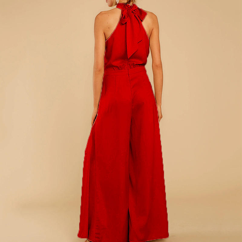 Combinaison sans bretelles taille haute unie pour femme, pantalon large, tendance