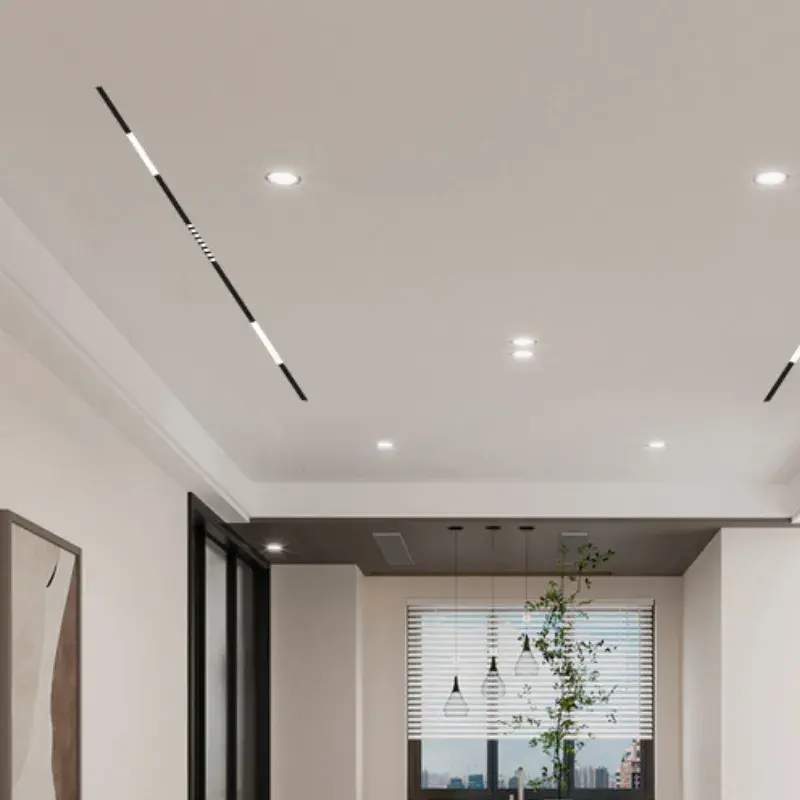 StrataGrille – Éclairage magnétique moderne sur rail LED avec alimentation 220V/48V, corps en aluminium pour installation en bureau, magasin et supermarché