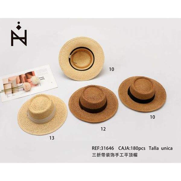 Chapeau de paille pliable à trois volets, décoratif, fait main, casquette plate unisexe, pour la plage en été