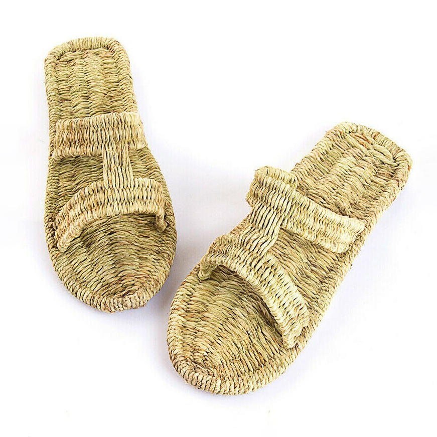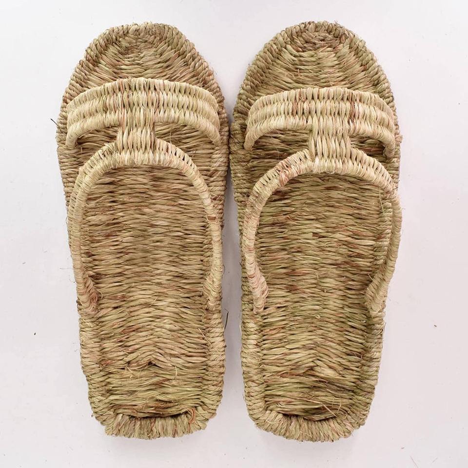 Straw lady and men foot ware natural raffia sandal flip-flops best price seagrass slippers
