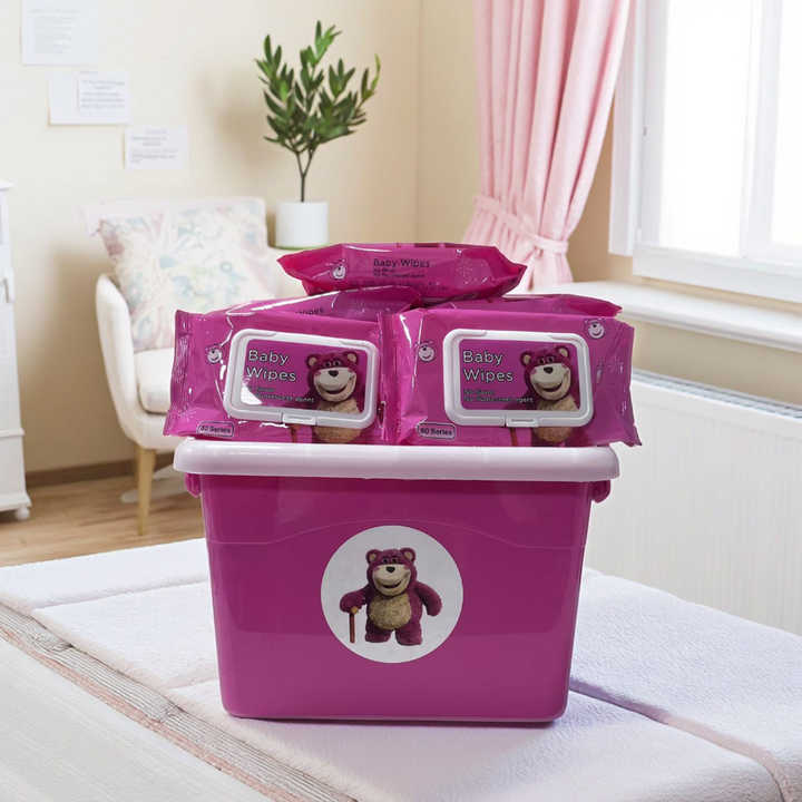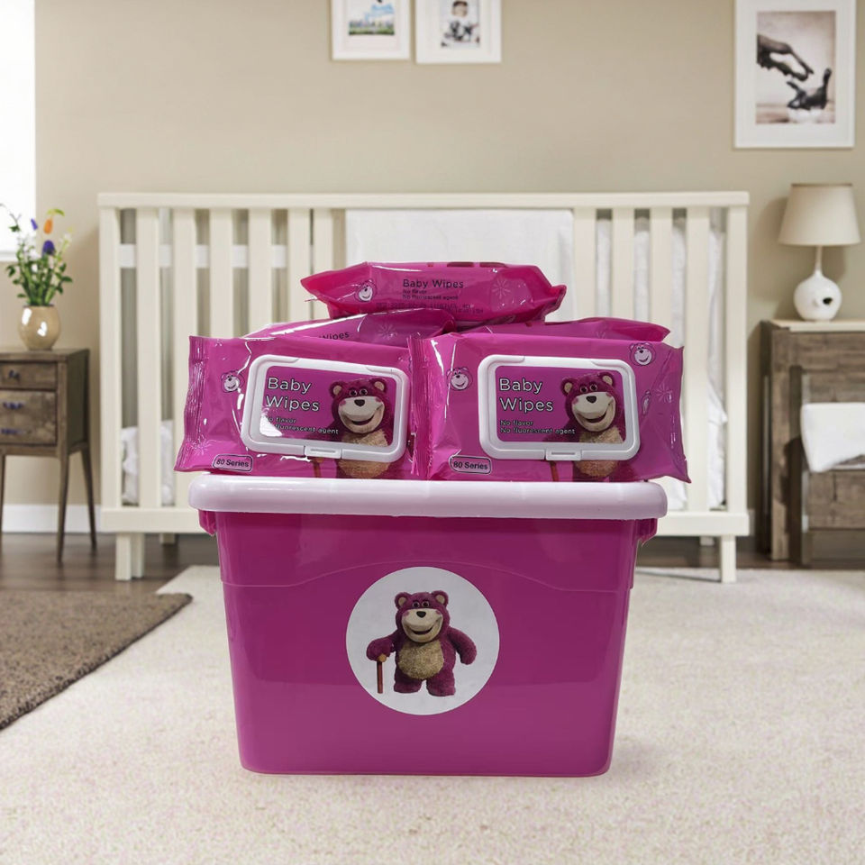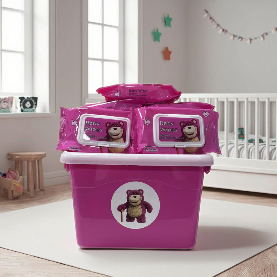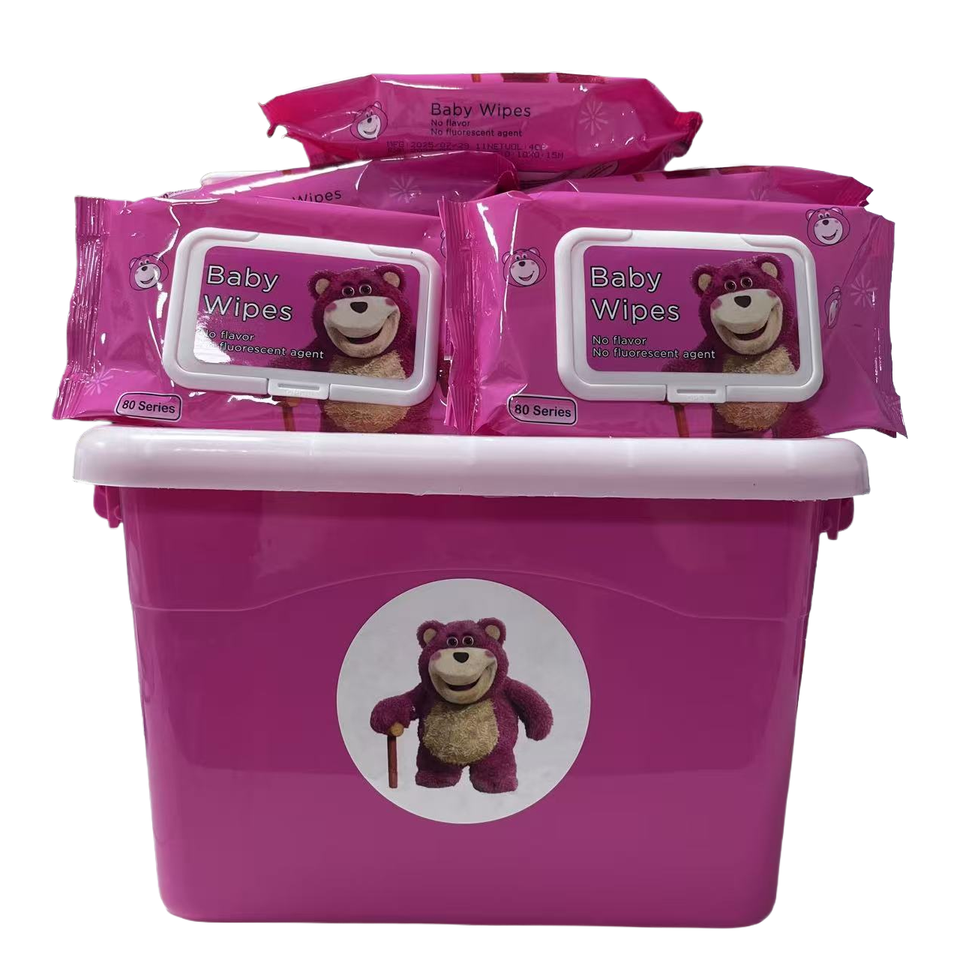 Lingettes humides pour enfants extra douces, écologiques, non tissées, au design ours fraise, pures pour l'eau, nettoyage des mains et du visage, boîte de rangement de 10 paquets