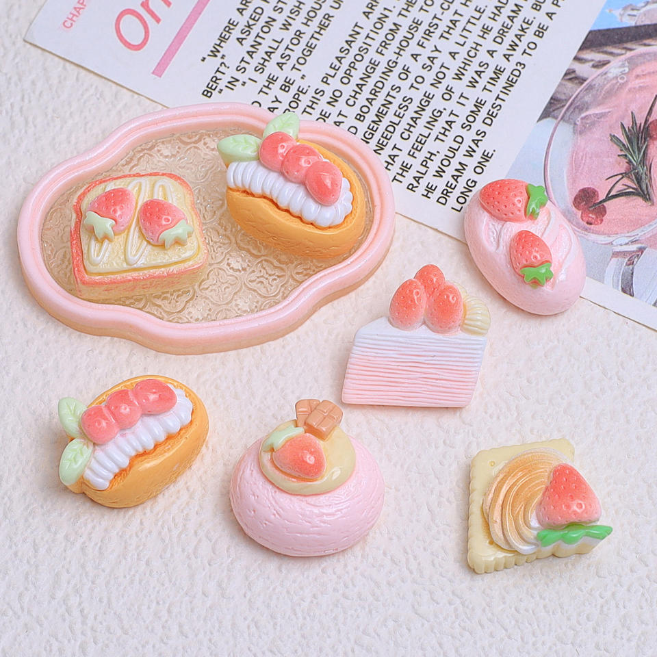 Kit de matériel créatif en gros pour accessoires de pince à cheveux, petites pièces en résine à base de colle crème, jouet alimentaire de dessin animé gâteau aux fraises, fait main DIY