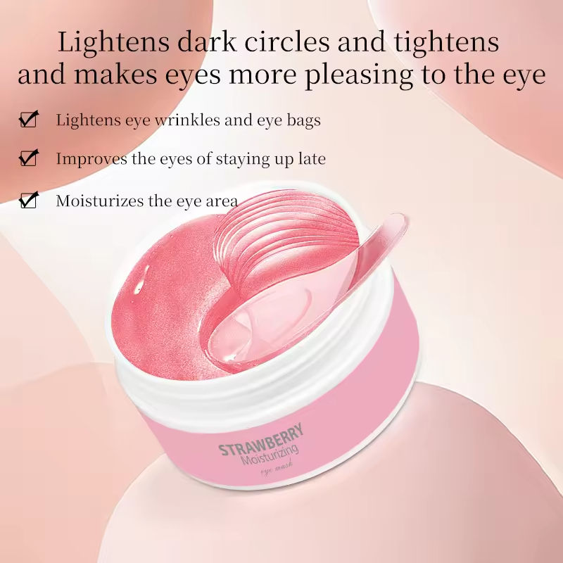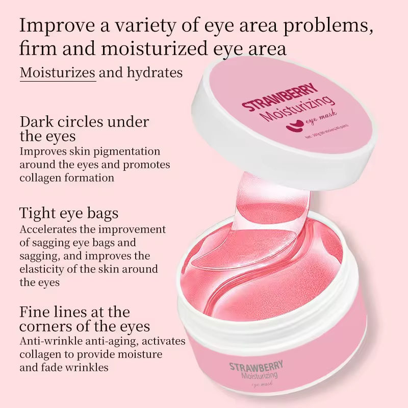 Masque pour les yeux à la fraise, masque pour les yeux hydratant léger et frais, 80 pièces, masque pour les yeux hydratant et rajeunissant, texture légère