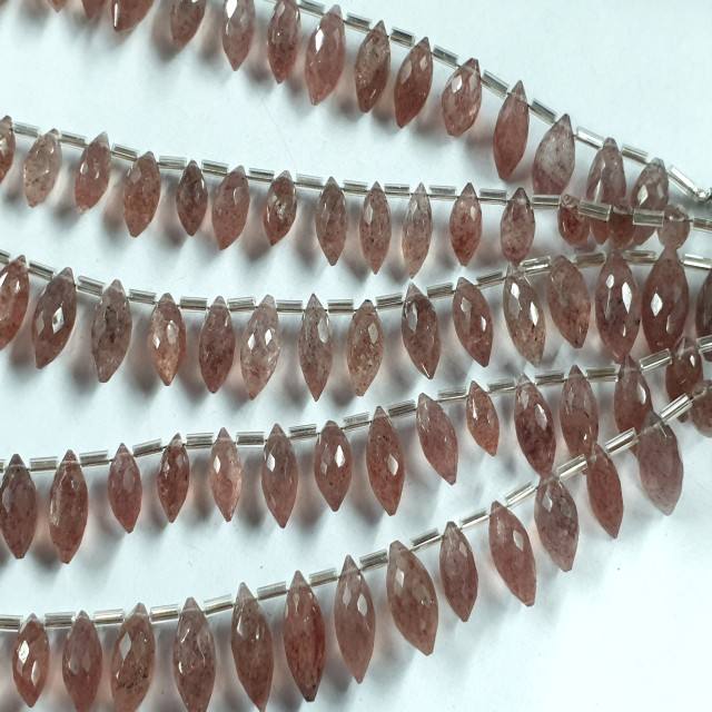 Perles de quartz fraise facettées en forme de cône, 8 pouces, perles de quartz fraise naturelles, perles de quartz fraise en gros, 6-7 mm