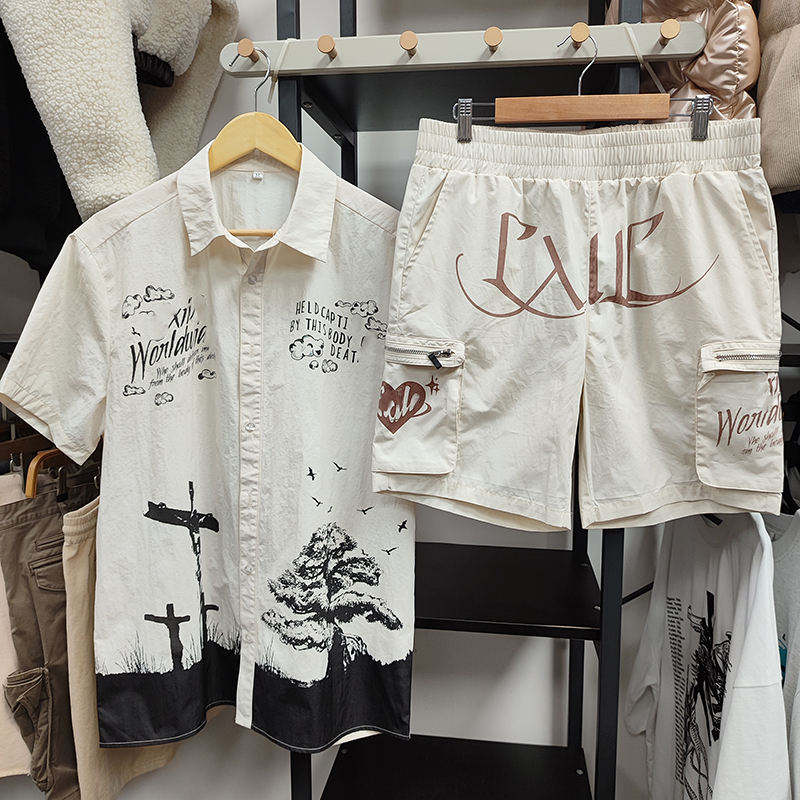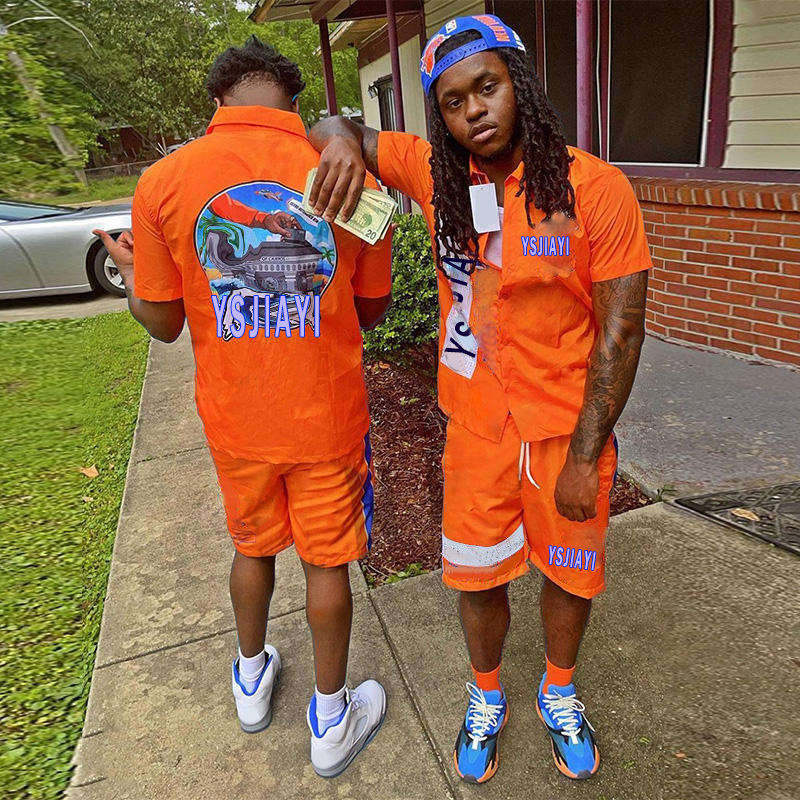 Street Custom Mens Summer Tracksuit 2 Piece 100% Cotton Hoodie and Shorts Set Men Wear Short Sets T Shirt With Shorts Twin Sets