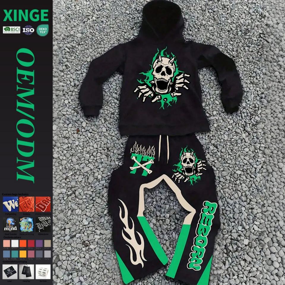 Numéro de Type:CUS250627- Halloween Skull Print 2 Piece Sweatsuit