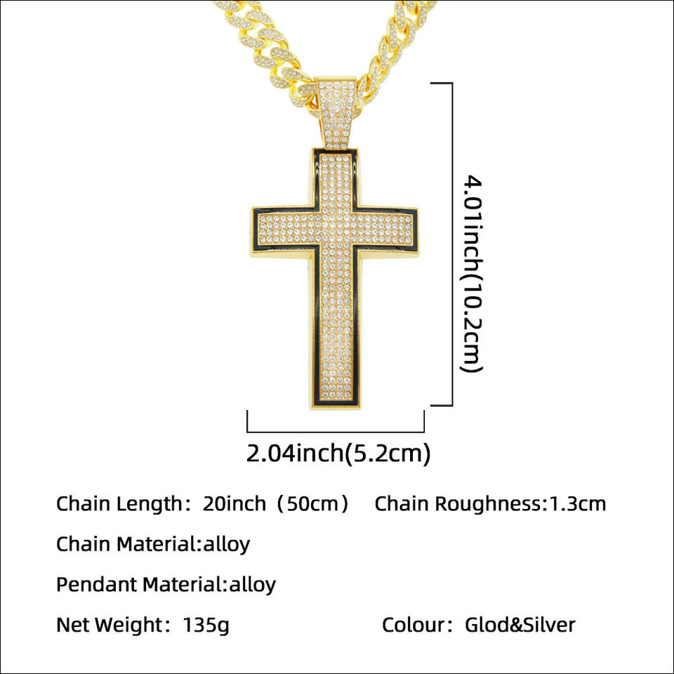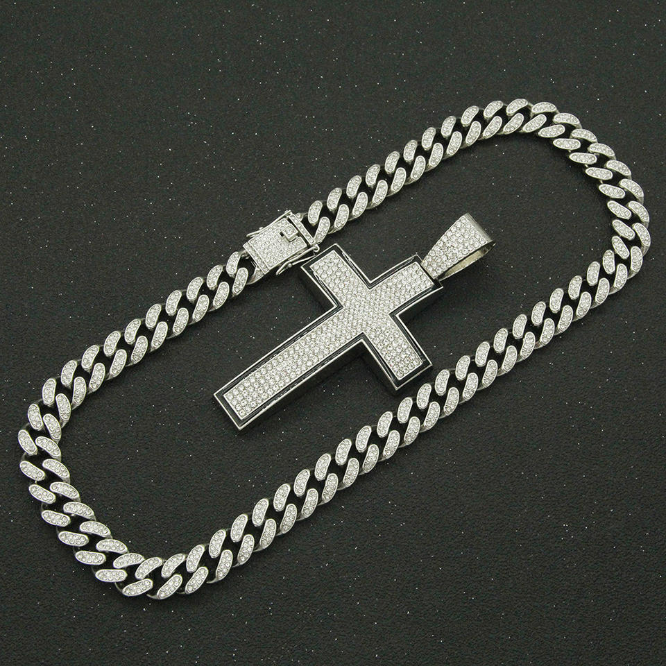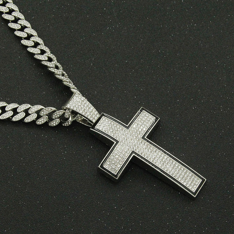 Collier pour homme en alliage plaqué or, avec pendentif croix en strass, chaîne maille cubaine, style hip-hop urbain, tendance et personnalisé, vente en gros
