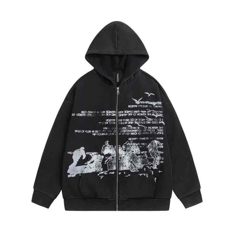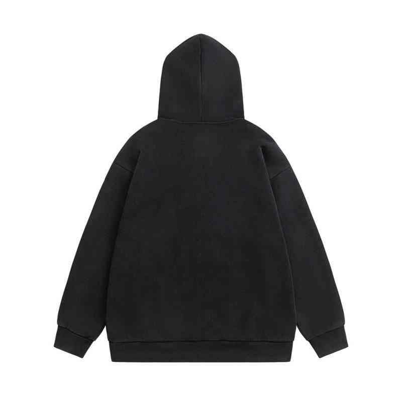 Sweat à capuche pour homme 100% coton, coupe ample, effet délavé, avec fermeture éclair, motif Street Love imprimé et broderie 3D, hiver
