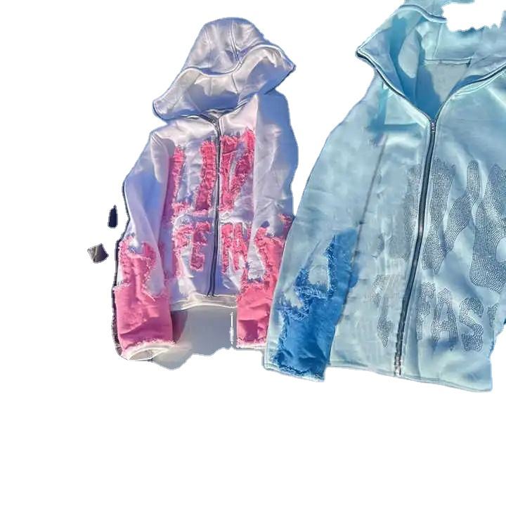 Style de rue personnalisé surdimensionné en détresse sweats à capuche blanc uni en vrac hiver hommes en détresse sweats à capuche en gros surdimensionné tenue décontracté