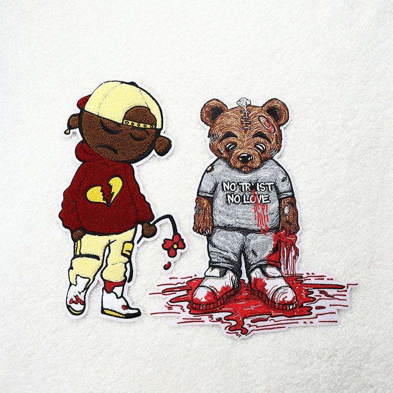 Patchs brodés en chenille tendance avec bordure adhésive et support thermocollant durable pour vêtements streetwear