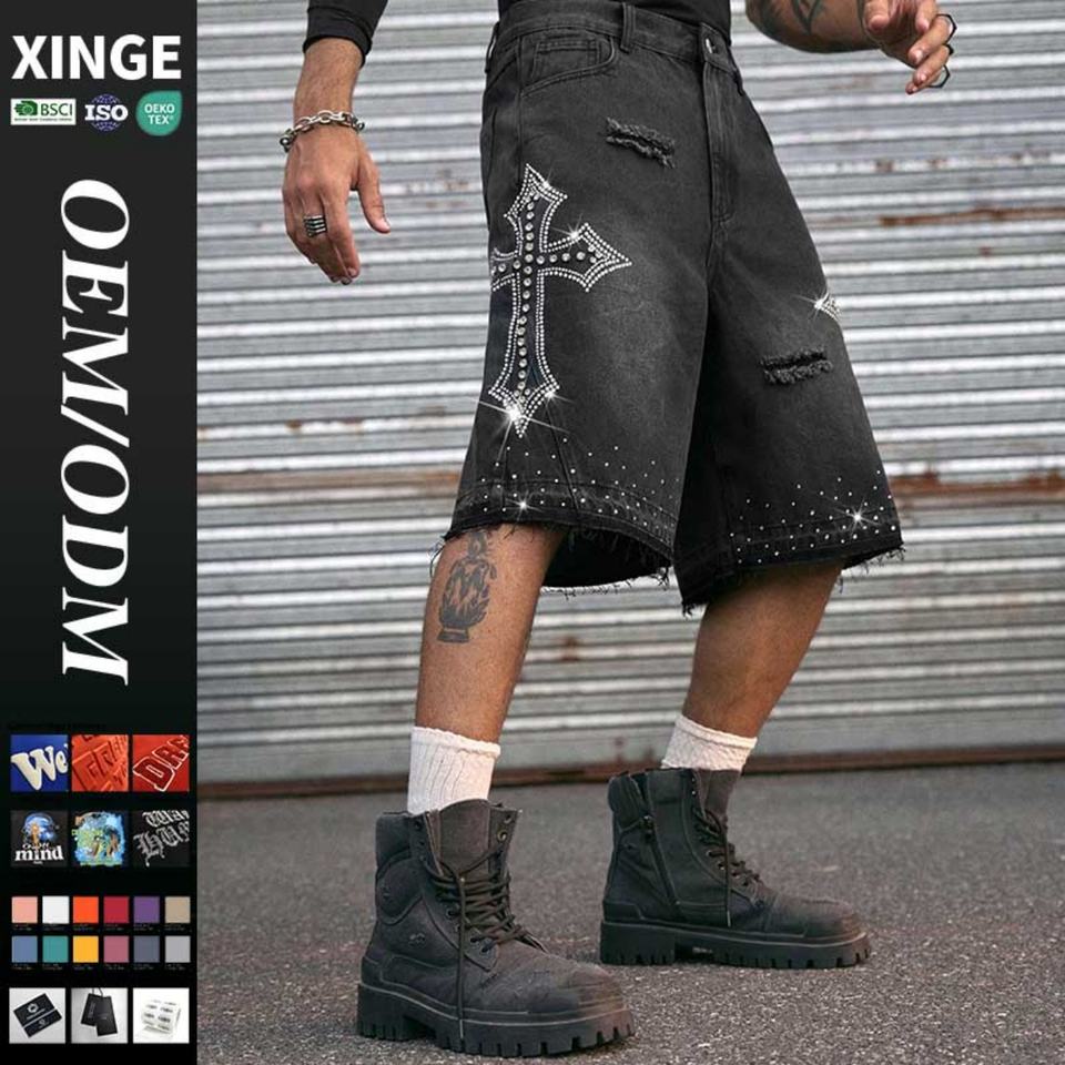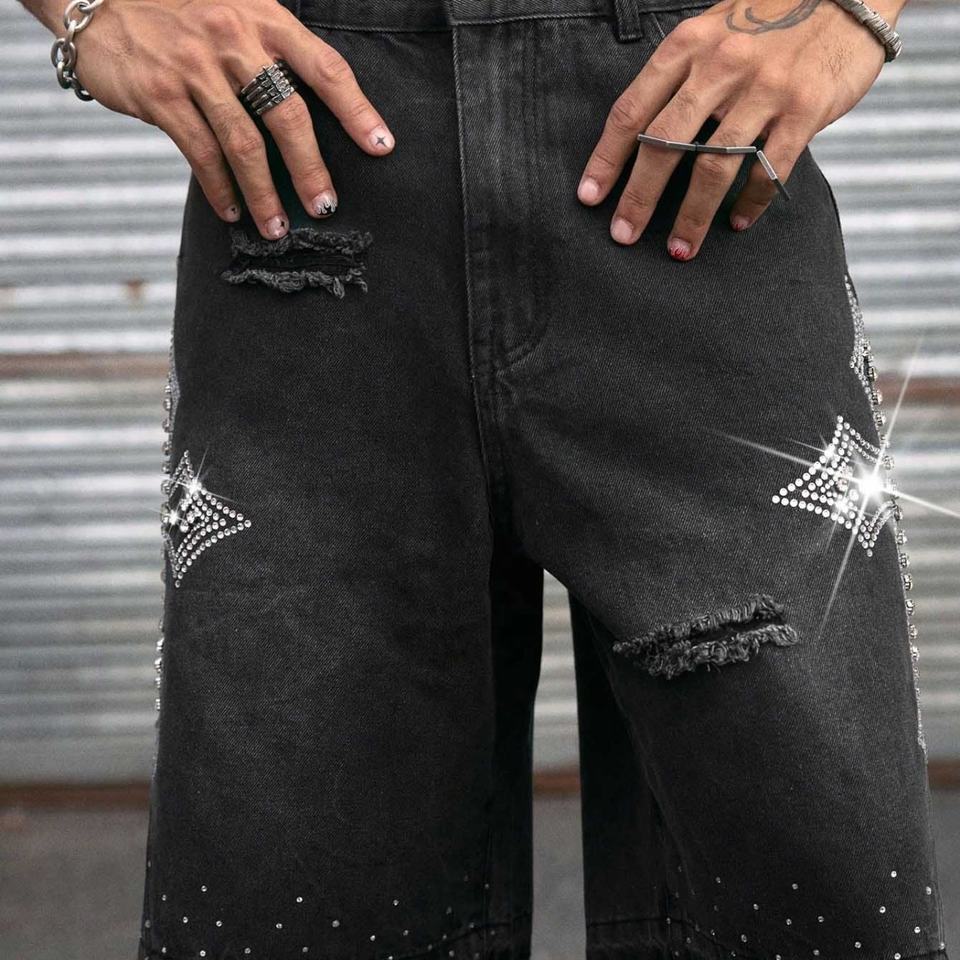 Numéro de Type:CUS250913-Rhinestone Print Men's Denim Shorts