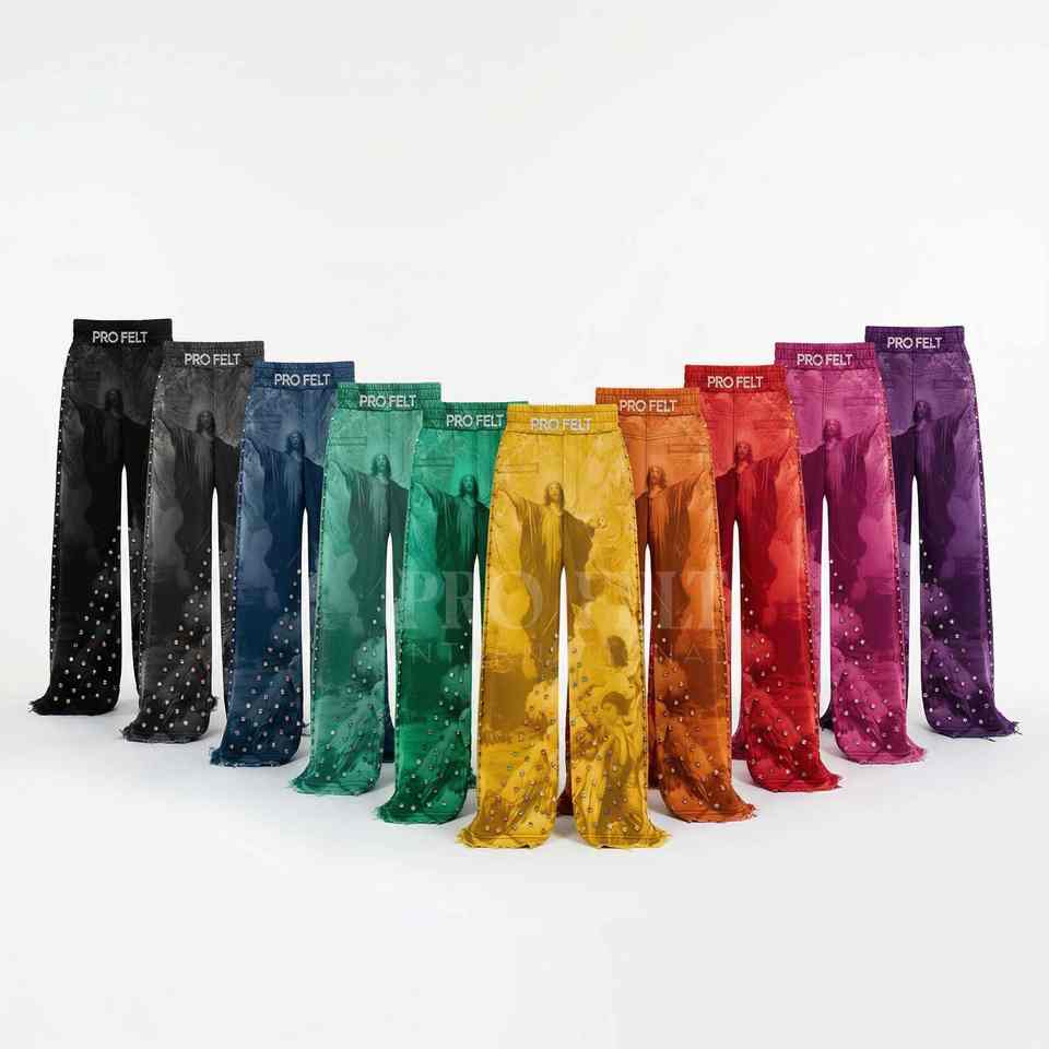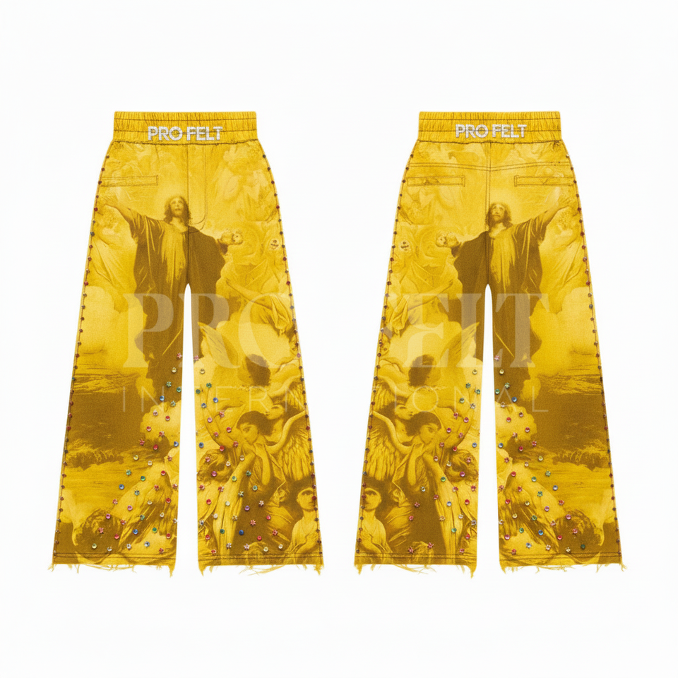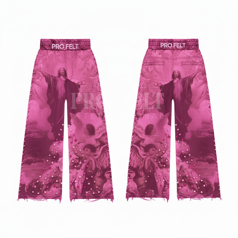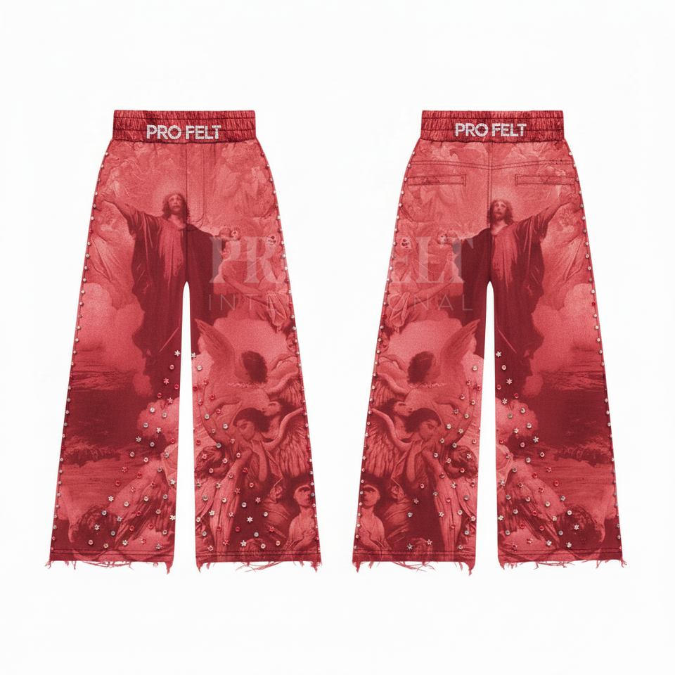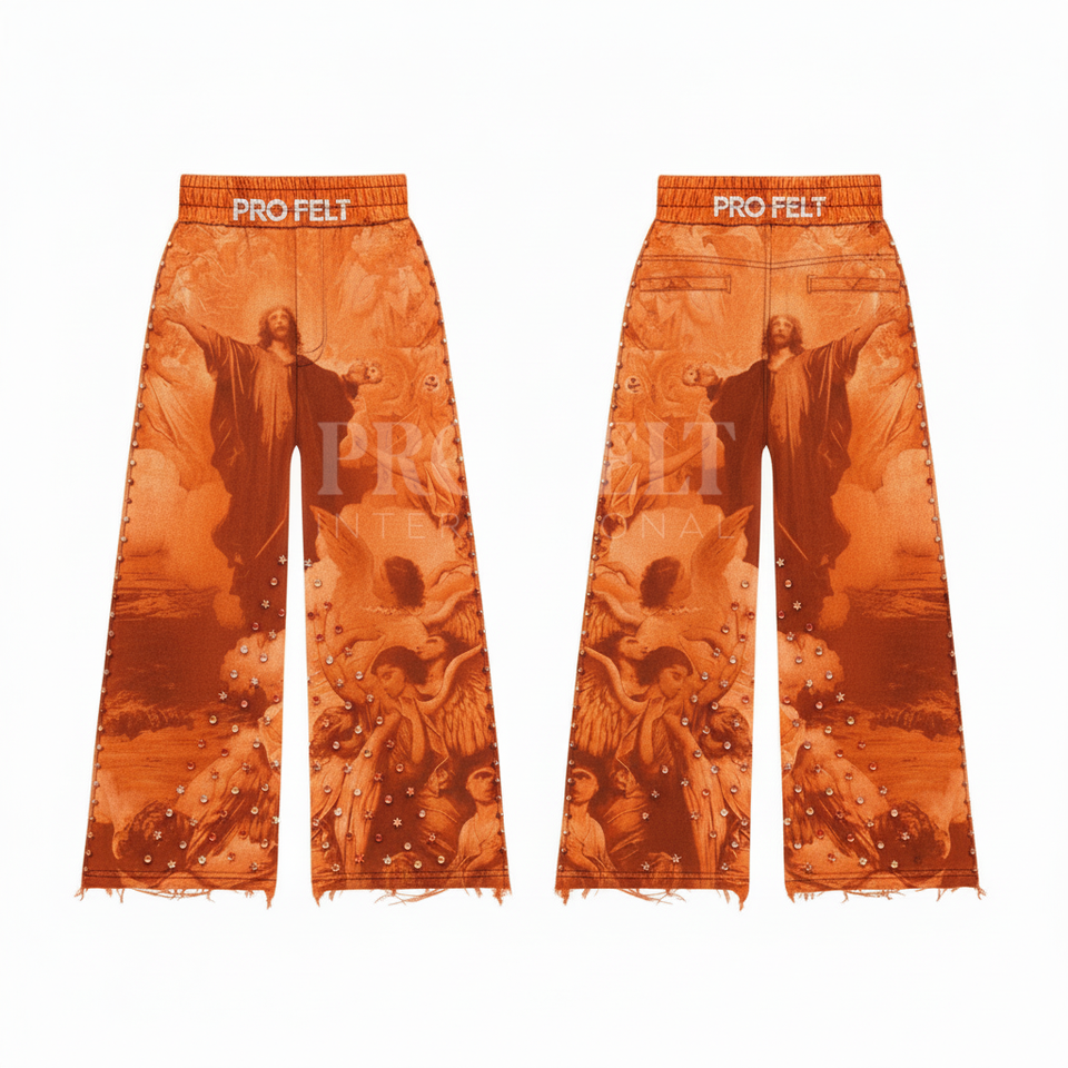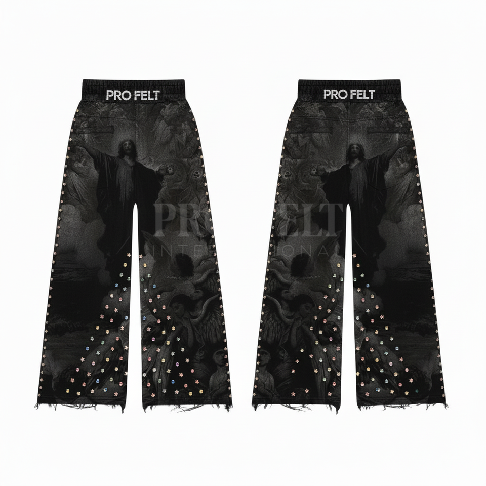 Pantalon de jogging personnalisé en coton 100% écologique et respirant, style streetwear vintage avec détails cloutés et imprimés sur mesure