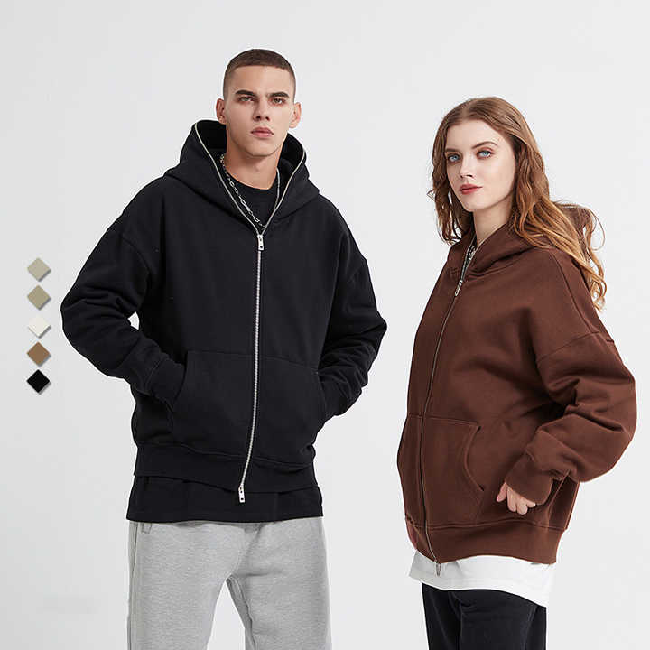 Sweat à capuche en coton et polyester à fermeture éclair pour hommes et femmes